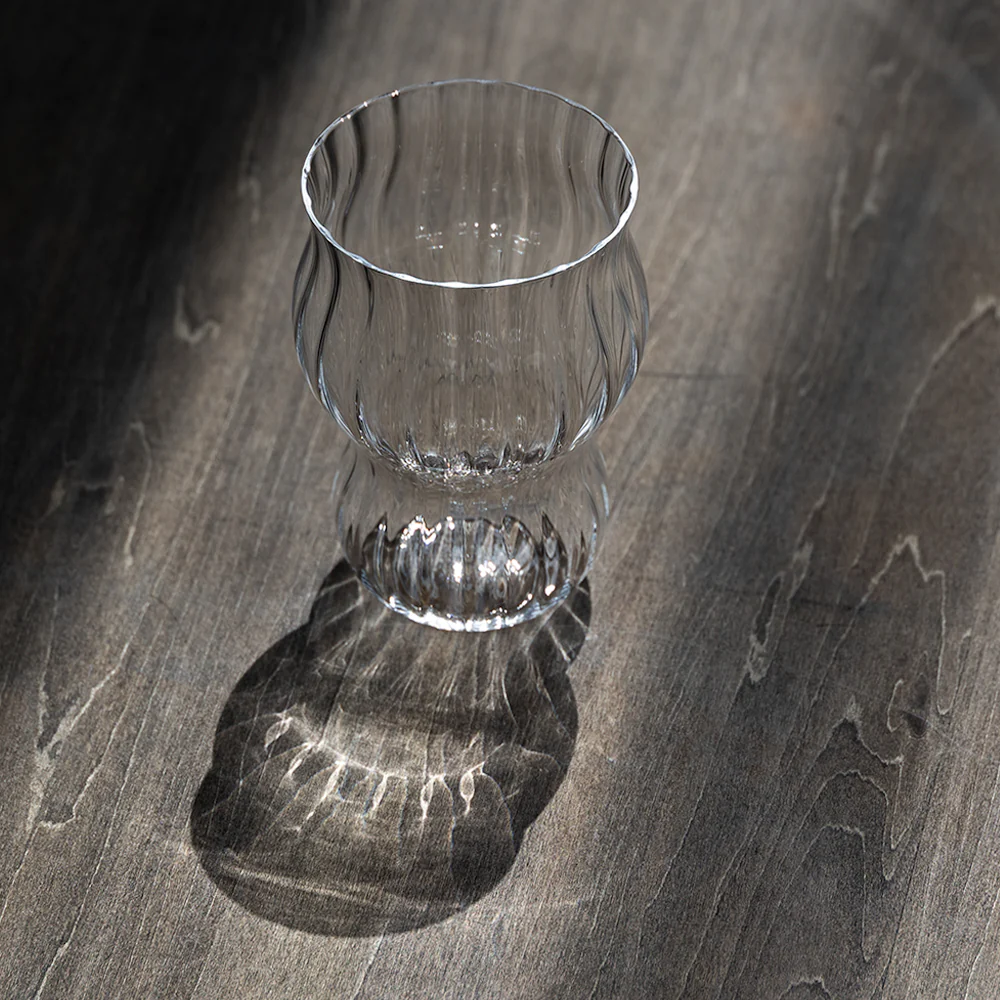 “Molded glass” refers to glassware formed with gently flowing ridges on its surface. Using a special mold, the glass is given subtle contours that add both visual depth and a refined tactile character —an approach often favored in professional barware for its distinctive presence and grip